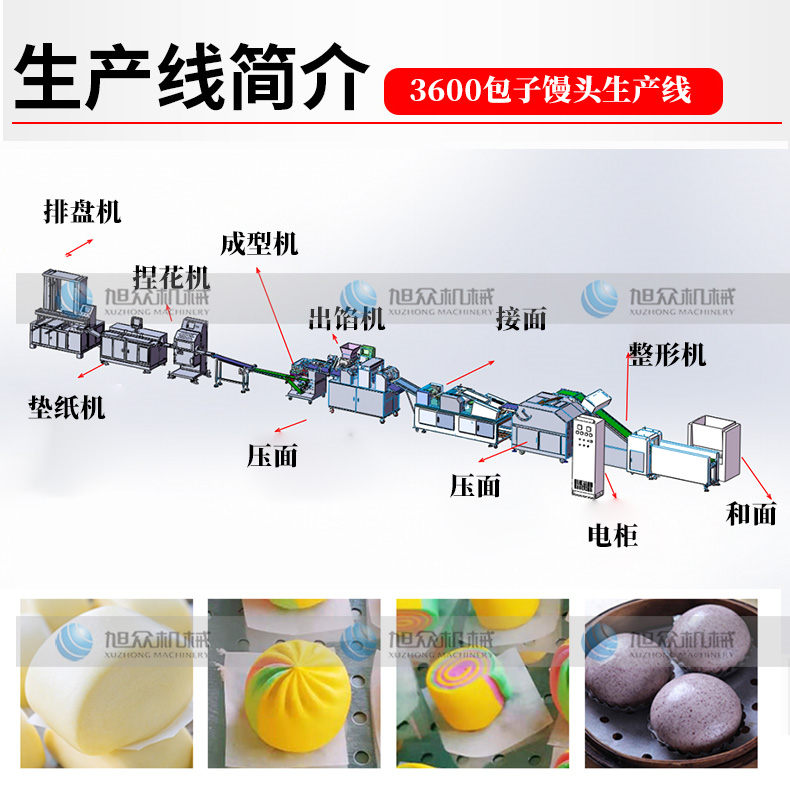 3600包子馒头生产线,免费学习配方工厂有专业的培训部门,购买生产线即可免费学习工艺配方,丰富的配方工艺能增加您的客户源。