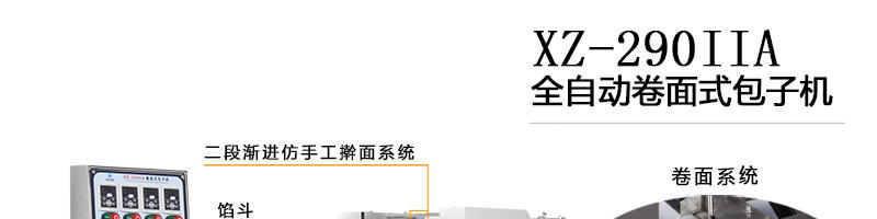 XZ-290IIA九州jiuzhou(中国),可生产各种不同馅料的包子、各式包馅食品,如豆沙包、南瓜饼、肉包、小笼包、水晶包等几十种包馅制品。适用于个体户、食品厂、学校等单位食堂。可满足不同客户群体。免费提供工艺技术。