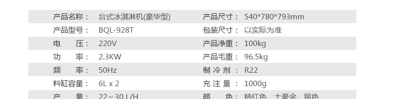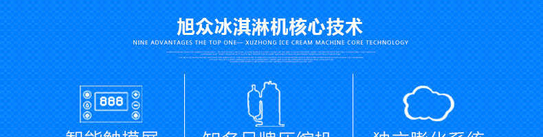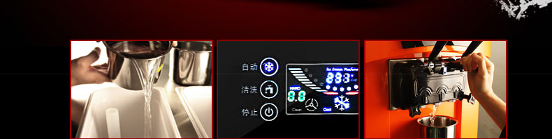 BQL-928T台式冰淇淋机,1.选用国际牌压缩机,辅以旭众精湛工艺,大大缩短冰淇淋成型时间,高效节能;2.全新液晶智能触控面板,简单明了,多功能易操作;3.全新升级专业膨化泵,膨化率高,产量增加30%;4.一键清洗功能,省时方便;5.主要部件采用不锈钢材质,时尚美观,持久耐用;6.先进的机械搅拌系统,机器运行稳定可靠,低噪音,产品口感爽滑细嫩。