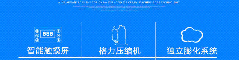 BQL-828立式冰淇淋机,1.选用国际牌压缩机,辅以旭众精湛工艺,大大缩短冰淇淋成型时间,高效节能;2.全新液晶智能触控面板,简单明了,多功能易操作;3.全新升级专业膨化泵,膨化率高,产量增加30%;4.一键清洗功能,省时方便;5.主要部件采用不锈钢材质,时尚美观,持久耐用;6.先进的机械搅拌系统,机器运行稳定可靠,低噪音,产品口感爽滑细嫩。