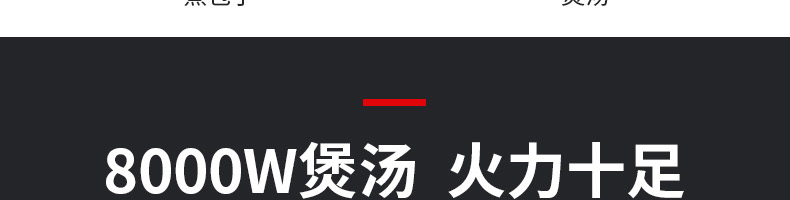 八千瓦平炉(磁控) XZ-KAM8C,八档磁控,满足各种烹饪。蒸煮炖煲炒,无明火模式。不同食材专属火力、大功率、高效率。8000W煲汤火力十足具有聚能技术,大面积均速加热,轻松制作美食。