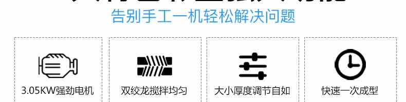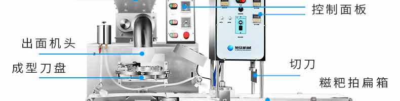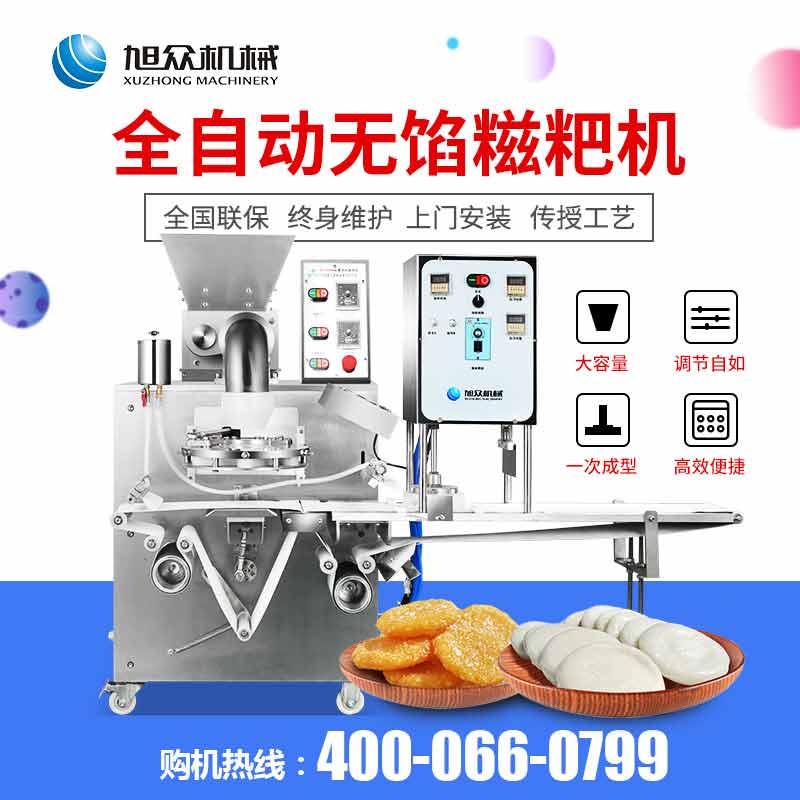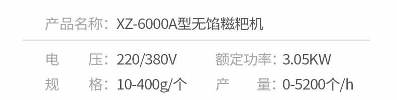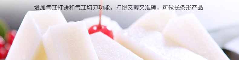 6000A无馅糍粑机,智能调控囿板,智能內芯控制,可自由调节输送,切刀和打饼的时间。调节自如拍扁成型,增加气缸打饼和气缸切刀功能,打饼又薄又准确,可做长条形产品