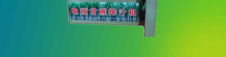 电瓶式甘庶汁机,采用全不锈钢外壳,外形美观,榨汁滚轮,机头部件都经过严格的防锈仿腐蚀处理,保证蔗汁符合卫生标准,适合宾馆、卡拉OK厅、水果店、冷饮店、凉茶店、车站、超市等服务行业压榨各种甘蔗之用。