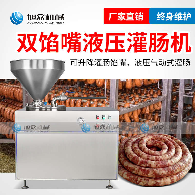 XZG-40液压灌肠机,液压灌肠机,可升降灌肠馅管,液压气动式灌肠。灌注较干的馅料效率更佳,各种美食由你制作。旭众灌肠机,为灌肠而生,健康更美味。