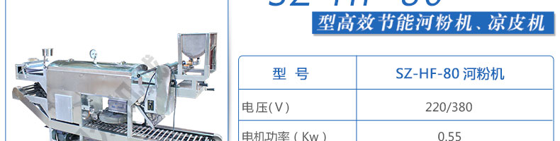 SZ-HF-80高效节能河粉机,用高效节能河粉机生产的河粉,完整保全了大米的营养成分,河粉品质一流,既营养丰富,又卫生可口、美味无穷。