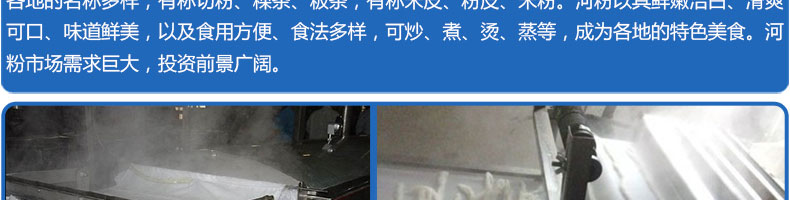 SZ-HF-150高效节能河粉机,用高效节能河粉机生产的河粉,完整保全了大米的营养成分,河粉品质一流,既营养丰富,又卫生可口、美味无穷。