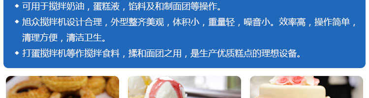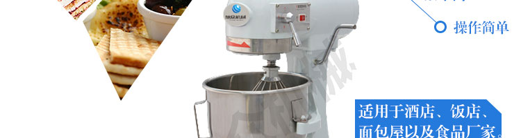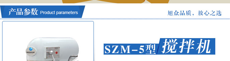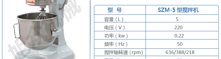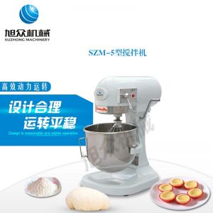 SZM-5型搅拌机,可用于搅拌奶油、蛋糕液、馅料及和制面团等操作。打蛋搅拌机等作搅拌食料、揉和面团之用,是生产优质糕点的理想设备,适用于酒店、饭店、学校部门、面包屋以及食品厂家。