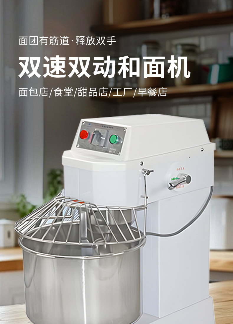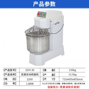 SZH-30型双速双动和面机,本机适合搅拌各种面包、包子、馒头、汤圆、披萨饼面团,专业设计避免面团过分升温并确保面团含氧量。过载、缺相保护装置,防护罩安全连动装置。