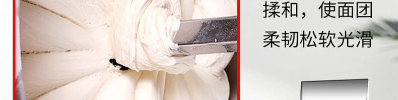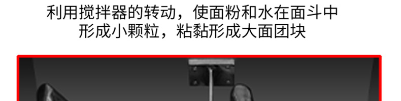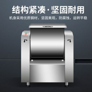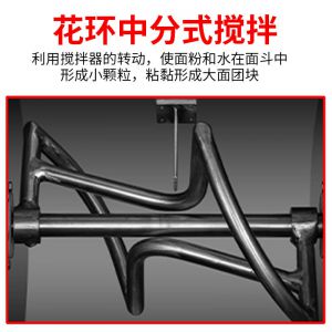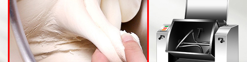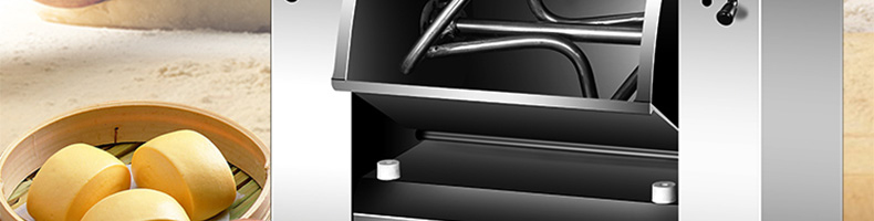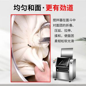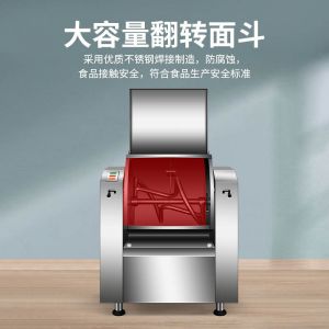 低噪音和面机,利用搅拌器的转动,使面粉和水在面斗中形成小颗粒,粘黏形成大面团块。大容量翻转面斗,采用优质不锈钢焊接制造,防腐蚀,食品接触安全,符合食品生产安全标准。