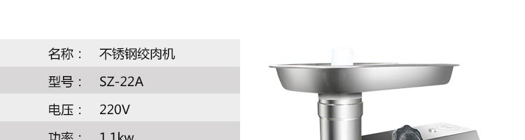 SZ-22A 绞肉机,可将未解冻的肉块或鲜肉直接进行绞切,制成规格不同的肉粒