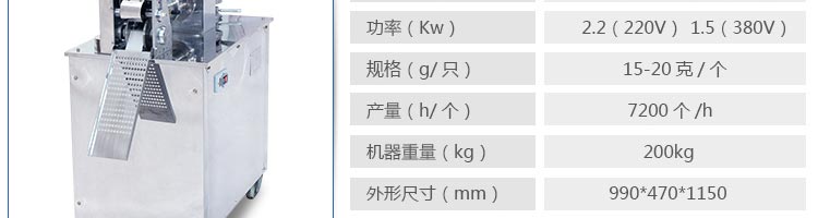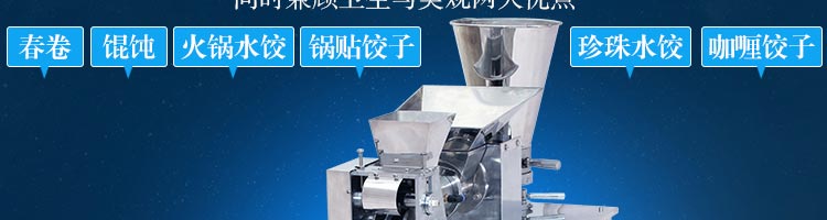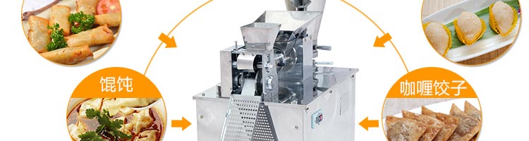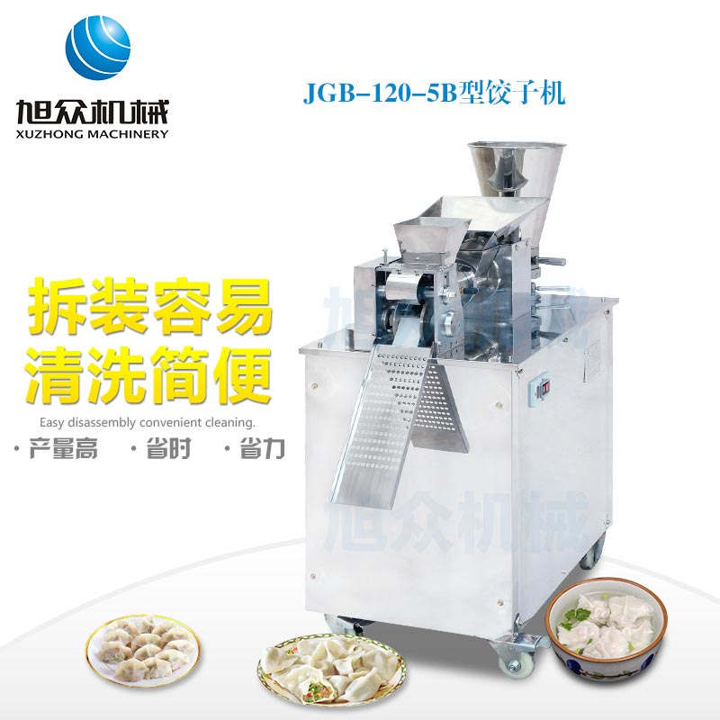 JGB-120-5B型饺子机,本机是一款可生产各种肉馅、肉菜混合馅、全菜馅及其他种馅饺子的设备。一机多用途,只要更换模具,就可制作不同的食品,如春卷、馄饨、咖喱角、锅贴等。适用于宾馆、饭店、餐厅、团体食堂加工,幼儿园、速冻饺子生产。