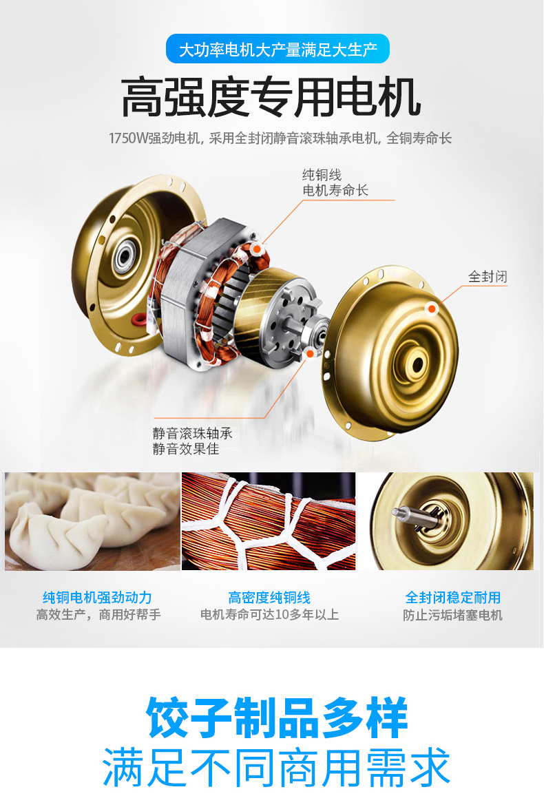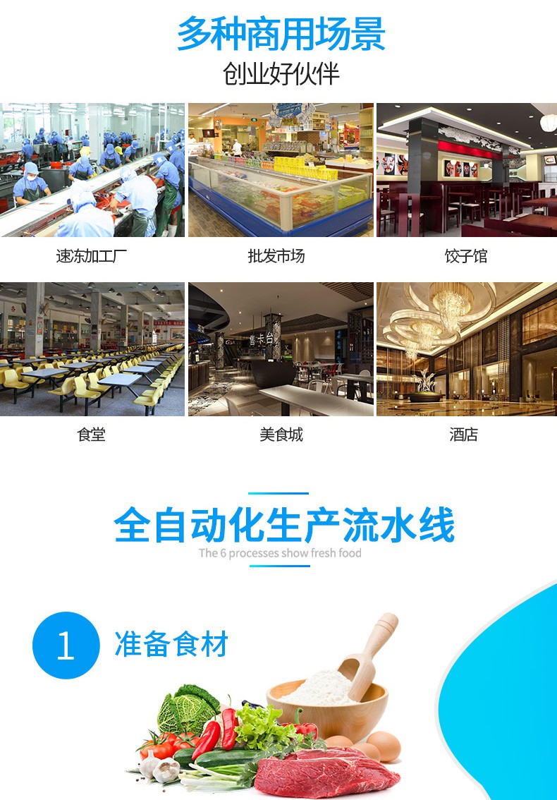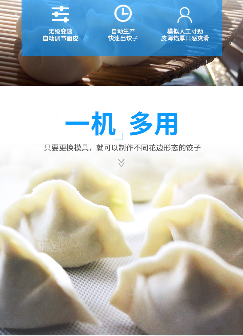JGB-210型仿手工饺子机,本机采用自动压面皮包饺子的新工艺技术,本机可生产速冻饺子等,能生产各种肉馅、肉菜混合馅、全菜馅及其他种馅的饺子,适用于饺子馆、食品生产厂家、宾馆、饭店、餐厅、团体食堂、学校、部队。免费上门安装调试,赠送面点工艺
