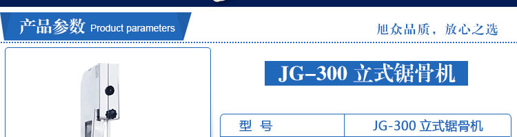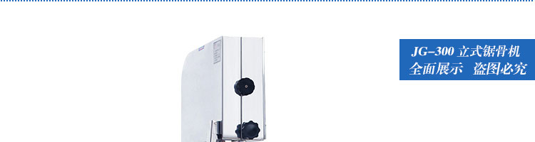 JG300 立式锯骨机,适用于各类骨头,冷冻肉,带鱼骨,冰块,冷冻鱼的分割。采用全不锈钢材料制作,具有工作效率高,操作安全的特点。广泛适用于食品加工厂,屠宰场,肉类加工厂等