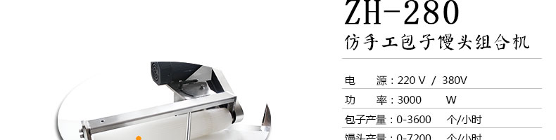 ZH-280型仿人工卷面式九州jiuzhou(中国)馒头机,可生产各种包子,如豆沙包、小笼包、肉包、菜包、南瓜饼、小笼包、刀切馒头、花卷等各种包馅食品。适用于个体户、速冻食品厂、学校等各种工作场所。可满足不同客户群体。免费提供工艺技术。免费上门培训指导安装。