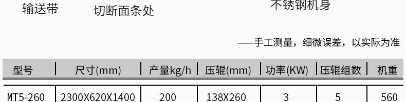 MT5-260型面条机,不同的面刀可以做出不同形状的面食做工细,实用又方便,出面均匀,成型漂亮,可咨洵客服了解详情