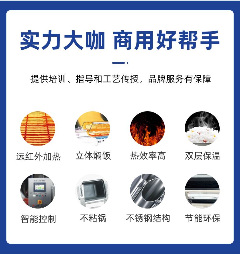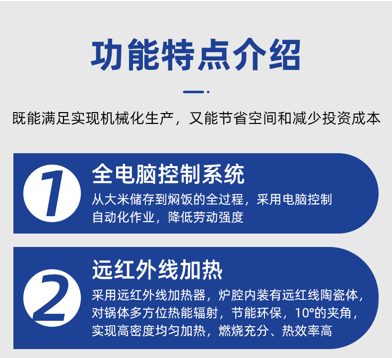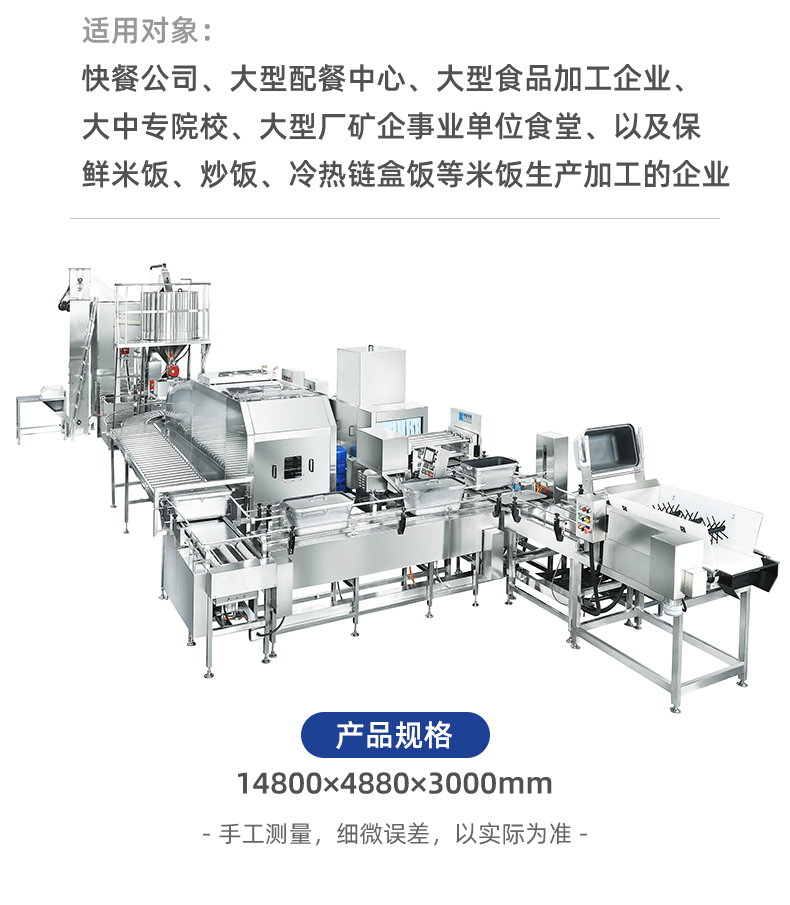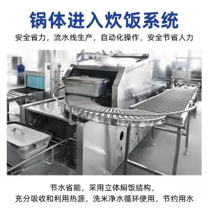机械手全自动米饭生产线,实力大咖 商用好帮手,提供培训、指导和工艺传授,品牌服务有保障。远红外加热、智能控制、立体焖饭、不粘锅、热效率高、不锈钢结构、双层保温、节能环保。