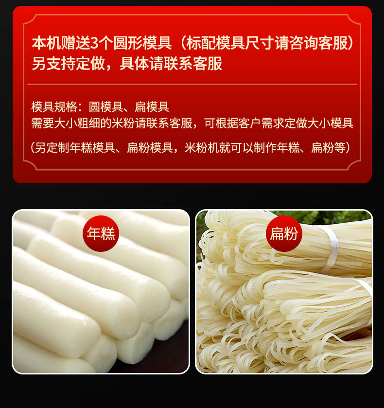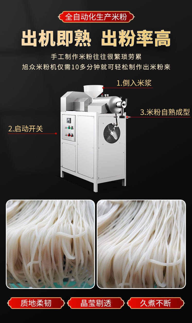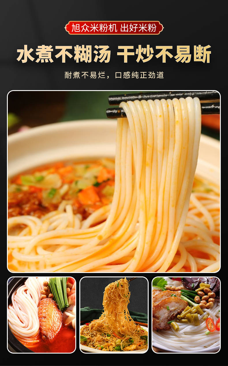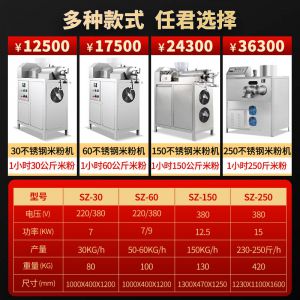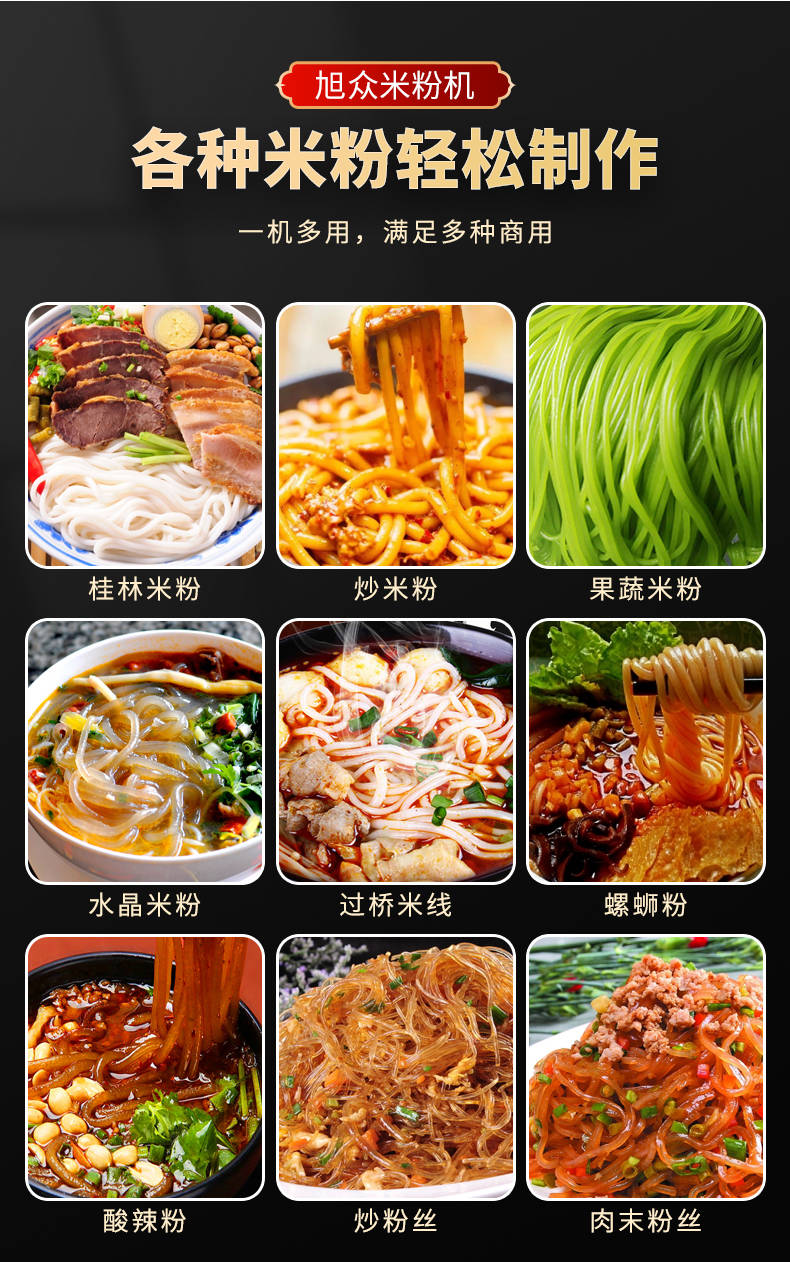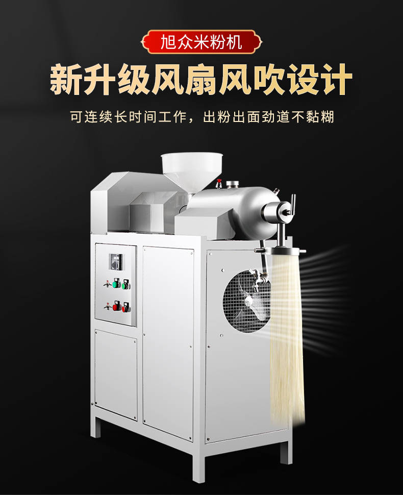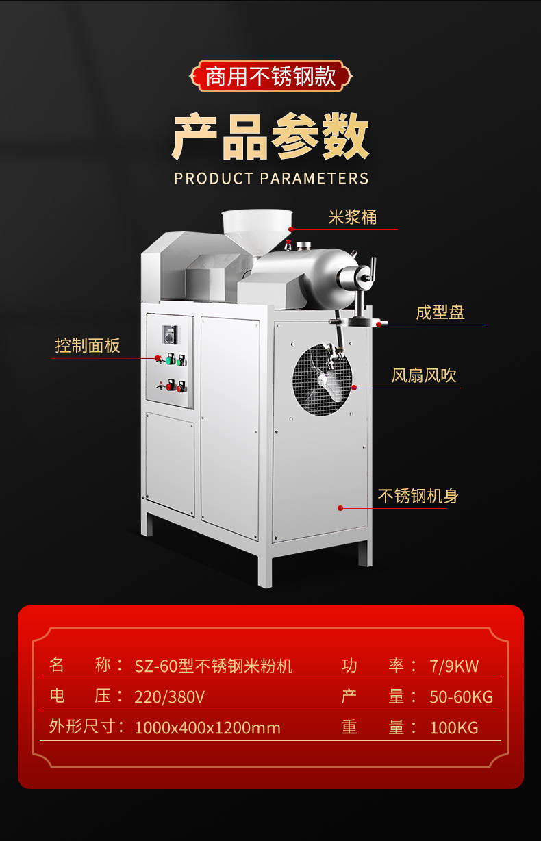 SZ-60不锈钢米粉机,可生产米粉、米线、桂林米粉、过桥米线、年糕、糍粑等产品。各种形状都可生产(圆、扁),加工食品外表光滑,厚薄、宽窄、粗细均匀可调,筋软适度,有弹性,口感柔软、味道纯正。