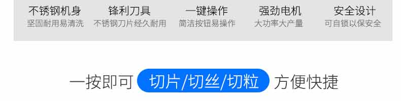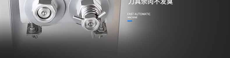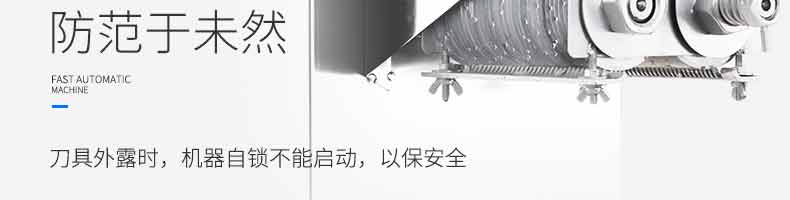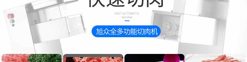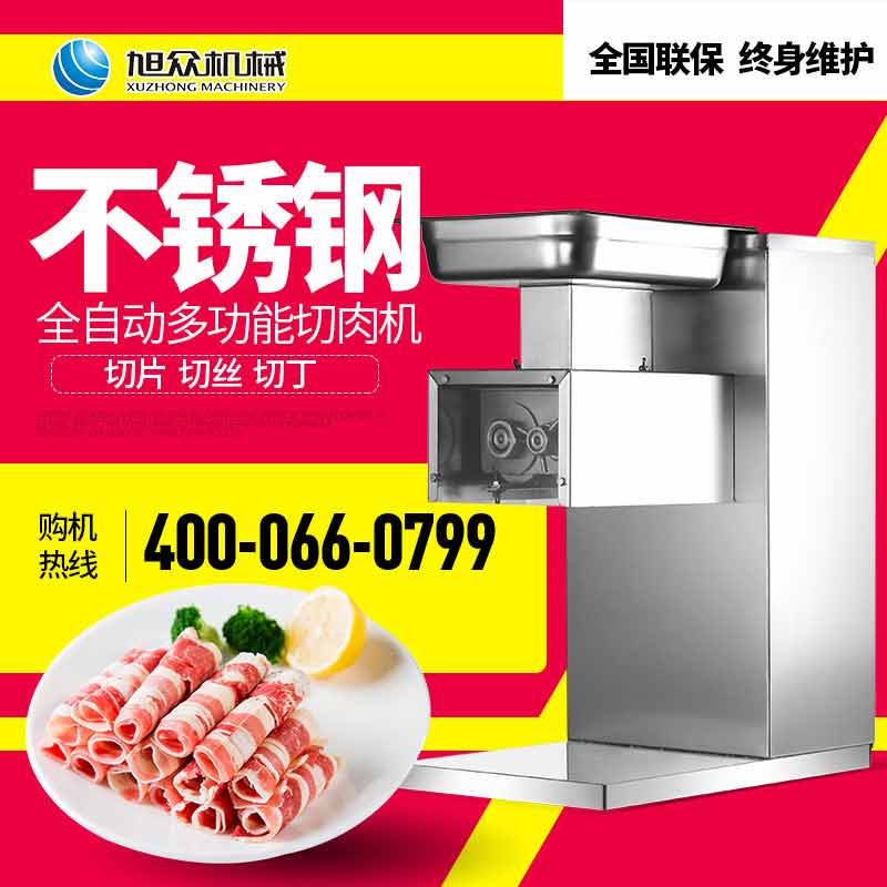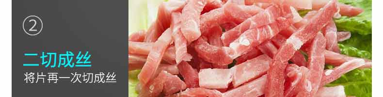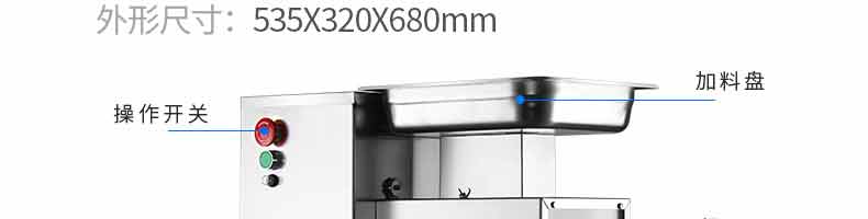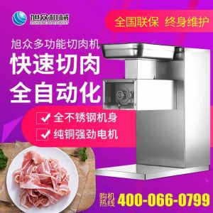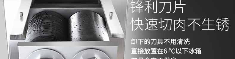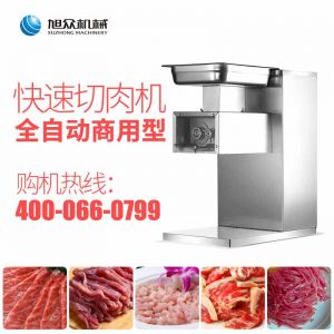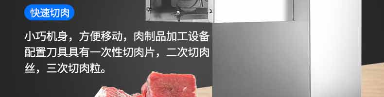 XZ-QX320-切肉机,小型切肉机是一款主要对肉类进行加工的设备,配置单层刀具一次性切肉片,二次切肉丝,再切成料。刀具采取外置悬臂式设计,拆洗方便,卫生更有保障;配置多种刀具,可加工不同厚度的肉片,实现一机多用;机内装有安全保护开头,刀具外露时,机器自锁不能启动,以保安全;卸下的刀具,不用清洗直接放置在6摄氏度以下的冰箱里,刀具余肉不发臭。刀片用特殊不锈钢材料制造,经久耐用。