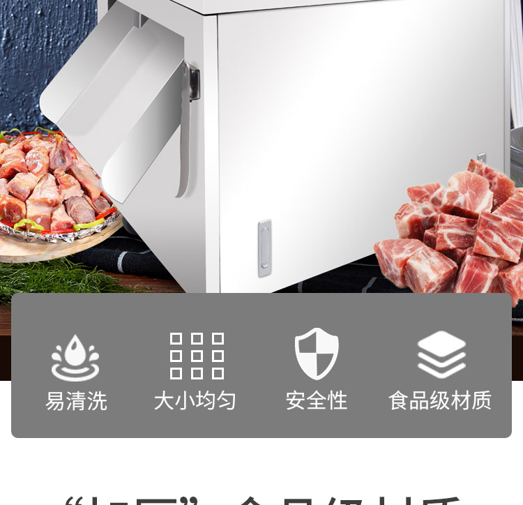 XZW-300鱼禽类剁块机,色禽类剁块机适合切冻肉带骨/不带骨。“加厚”食品级材质安全卫生质量保证。传送带推进物料提高效率节省力气。