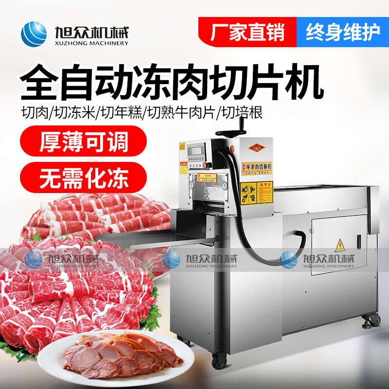 XZ-羊肉切片机,一次成片切片神器,全自动冻肉数控切片机,肉片自动打卷|厚薄可调|无需化冻|一机多用。你还用手工切片吗?旭众全自动羊肉切片机一机多用,轻松解决切割问题。