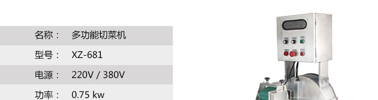 XZ-681多功能切菜机,本设备可切叶菜可切片、丝、段等,叶菜类,切割尺寸: 1 - 60mm 可以调整,适用客户群:食品厂,净菜加工;学生营养餐,餐饮连锁,中央厨房,企业食堂等。