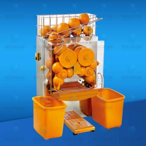 2000E-2自动榨橙汁机,该鲜橙榨汁机采取挤压式,鲜橙经消毒、漂洗后,直接进入机器 ,自动剥皮、榨汁、过滤,现榨现饮,橙汁中无皮、无丝 、无籽、无渣,口感佳。适用于小饮店、水果店、饭店、宾馆、酒吧、卡厅、茶秀、咖啡屋等。