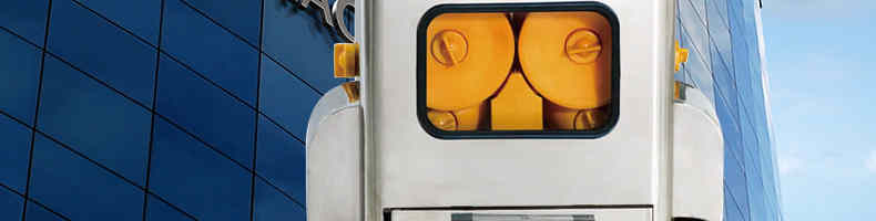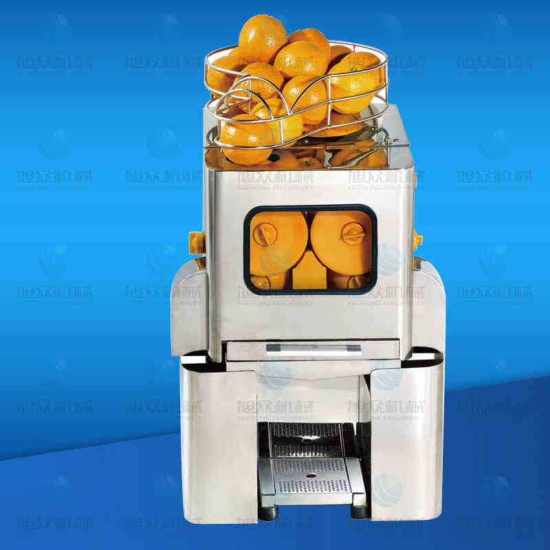 2000E-5小型自动榨橙汁机,是天然绿色饮品的生产机器,该鲜橙榨汁机所榨出的橙汁是现榨的原汁,采取挤压式,鲜橙经消毒、漂洗后,直接进入机器 ,自动剥皮、榨汁、过滤,现榨现饮,橙汁中无皮、无丝 、无籽、无渣。