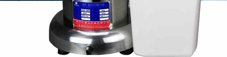 WF-B3000商用榨汁机,该机机壳是铝合金铸成,经专业工艺制作,与榨汁接触的原件均为不锈钢制作,抗腐蚀,不生锈,易清洗。可榨各类新鲜瓜、果、蔬菜。如西瓜、哈密瓜、苹果、梨、胡萝卜、芹菜等。