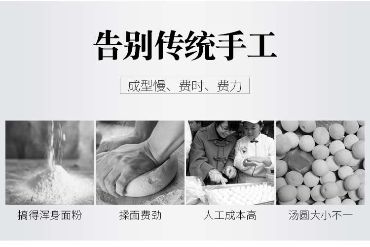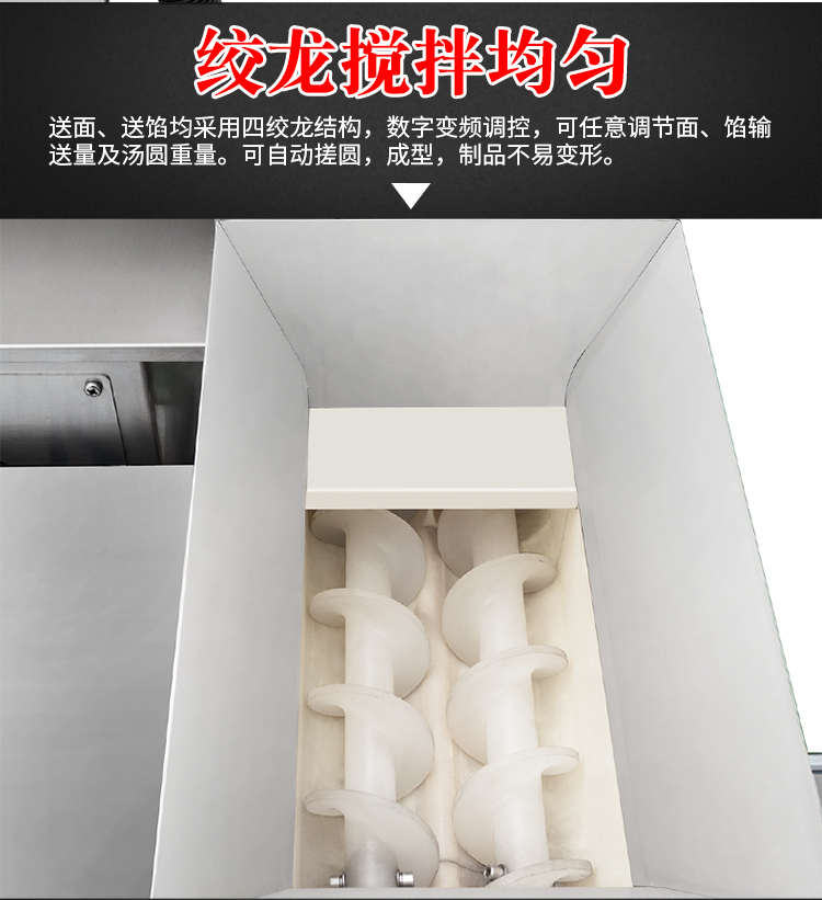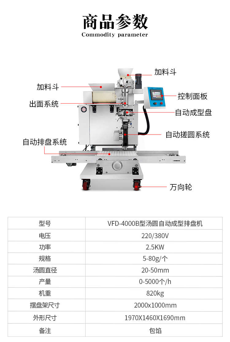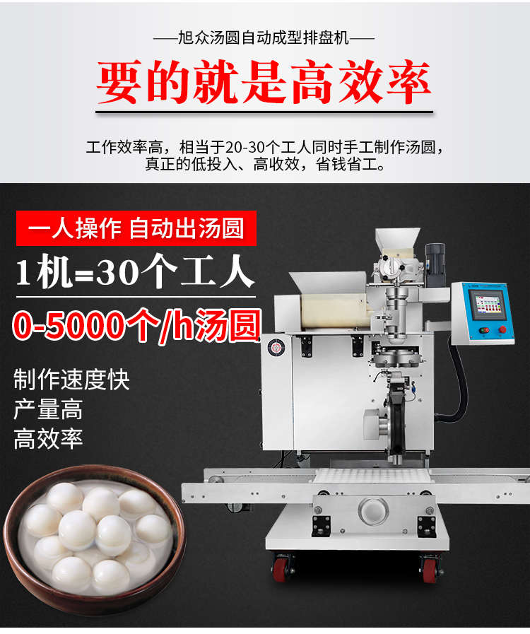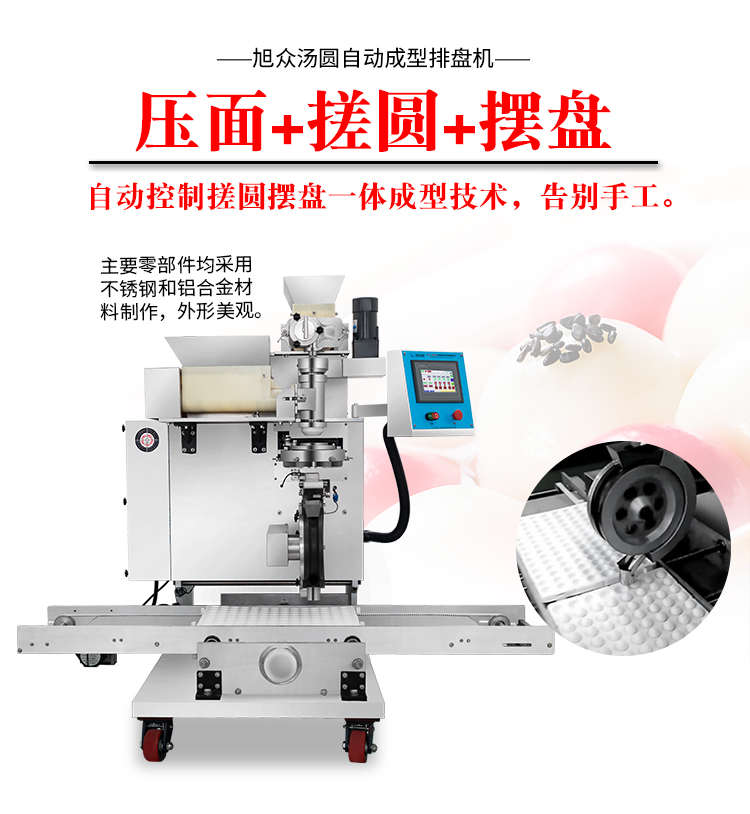 VFD-4000B汤圆机,定量准确自动搓圆排盘成型大小均匀口感柔滑。可制作各式包馅食品,如汤圆、芝麻球、豆沙包、南瓜饼、奶黄包等
