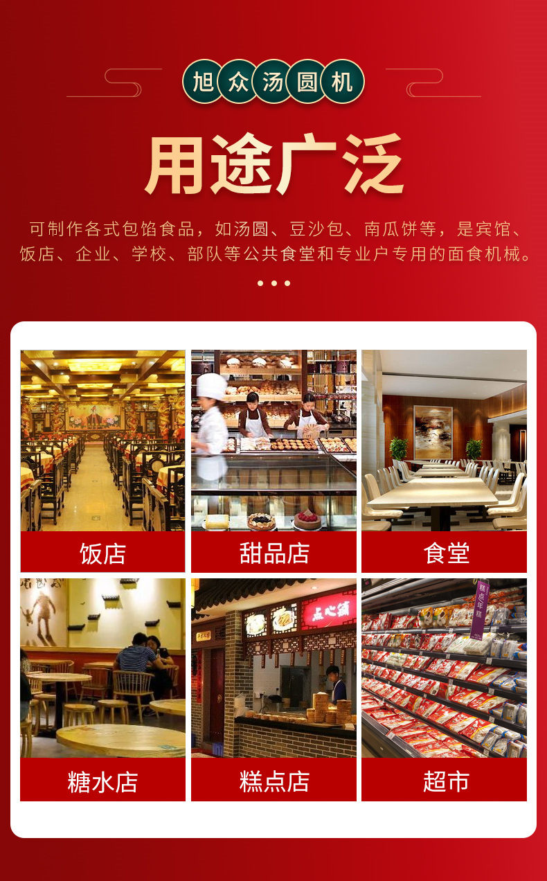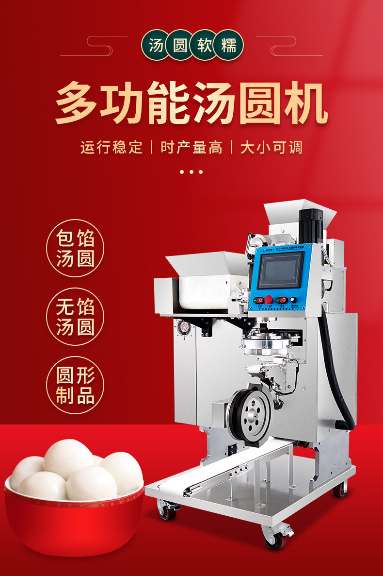 4000C汤圆机,多功能汤圆机,运行稳定、时产量高、大小可调。制品多样性生产各种大小规格不同的有馅汤圆,无馅汤圆、豆沙包、南瓜饼,芝麻球,地瓜丸,香芋丸,叶儿粑,青团,粘豆包等。