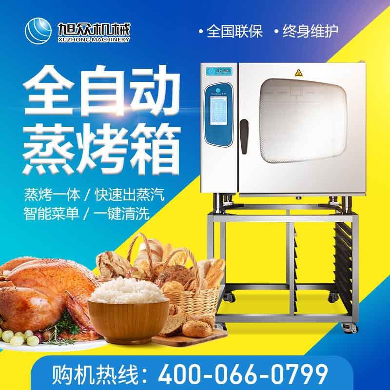全自动蒸烤箱,旭众全自动蒸烤箱,适用于餐馆、酒楼、快餐店、超市、酒店、学习等。多层大容量,智能预设菜单,热风烧烤均匀出色