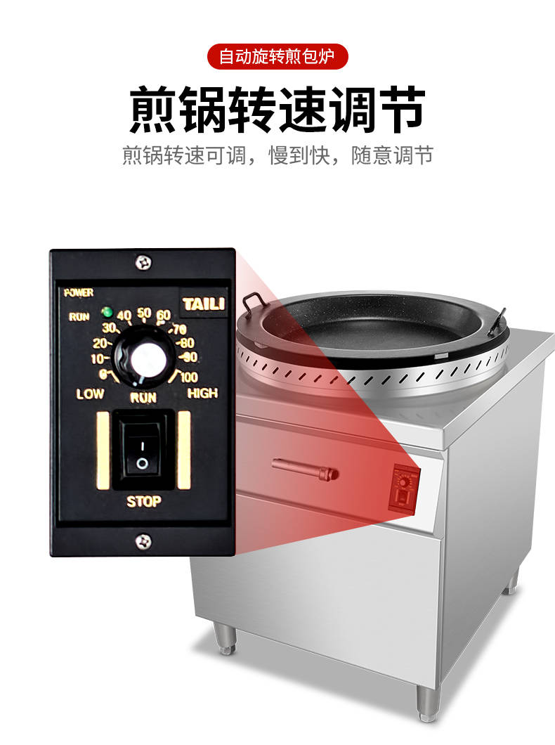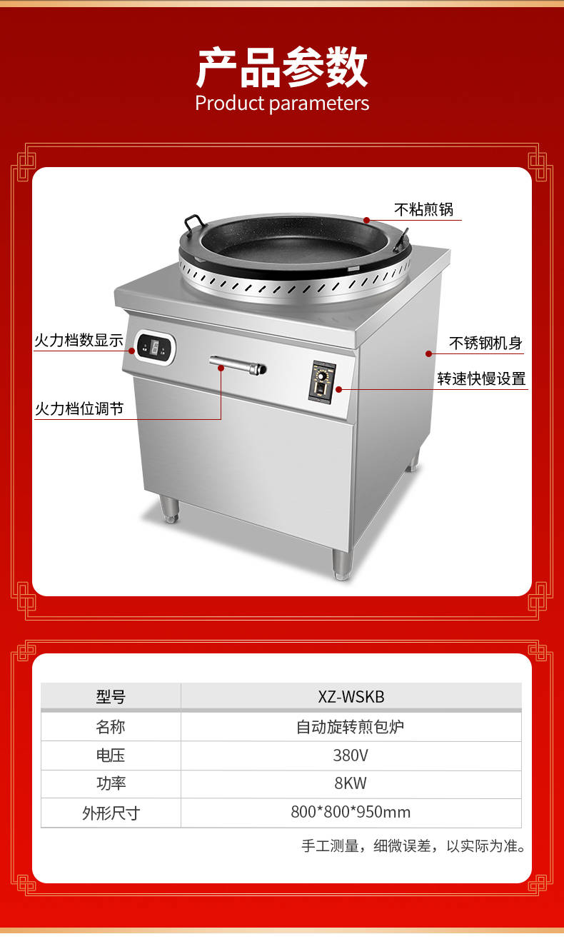 XZ-WSKB自动旋转煎包炉,煎制各种美食锅在手,各种煎包煎饺煎美食,轻松搞定。自动旋转、受热均匀煎锅360°旋转煎美食,省时省力,不焦不糊,高效率转速可调快慢自由可调。
