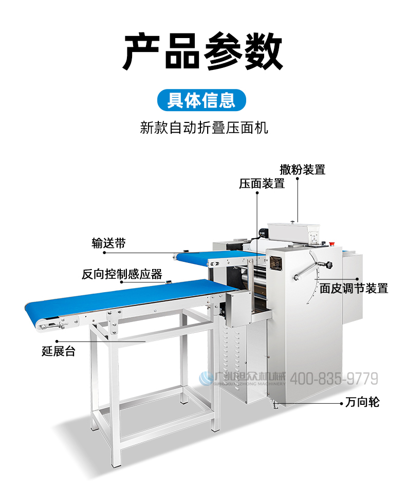 XZ-ZDYMJ370型自动折叠压面机,整机不锈钢机身打造,真材实料,选用不锈钢材质,打造经久耐用、防腐蚀。匠心细节,彰显品质贴心设计。一键设定压面次数,智能定时,只需设定好压面次数,就能全自动压面出面。