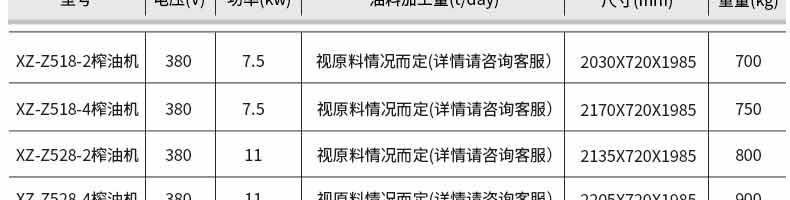 XZ-Z518、XZ-Z528、XZ-Z538系列榨油机,